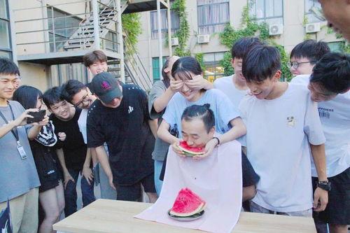 舞蹈秀结束后,紧接着就是让人期待的“吃瓜大赛”。这个环节可是新生们最期待的,因为它不仅考验着同学们的吃瓜技巧,更考验着他们的团队协作能力。
